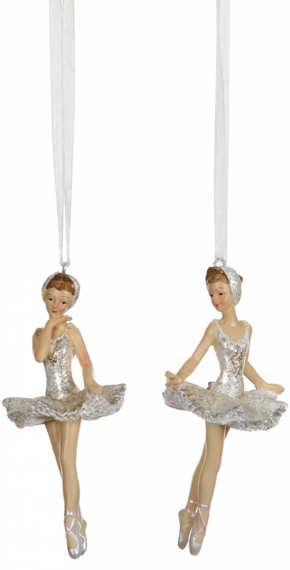 Подвеска «Балерина Роскошная» добавит нежный, легкий и изящный штрих к новогоднему украшению елочки и интерьера. Она сделана из полиэстера: элементы платья и пуанты белые с золотыми и серебристыми блестками. К голове приделана петелька, в которую продета лента атласная и за нее нужно повесить игрушку на елку.