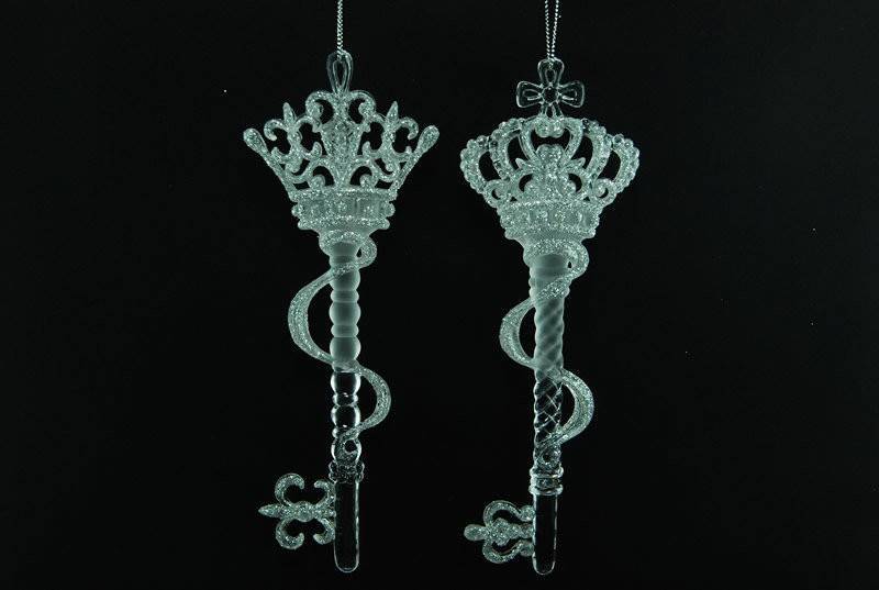 Серебристый ключ как-будто выточен изо льда. Украшение изготовлено из высококачественного акрила, который дает потрясающий визуальный эффект. Такое украшение будет особенно красиво смотреться при включенных гирляндах. Ключ может стать необычным элементом декора комнаты или офиса, а также украсить хвойные ветви новогоднего дерева. Размер украшения 20,5 см.