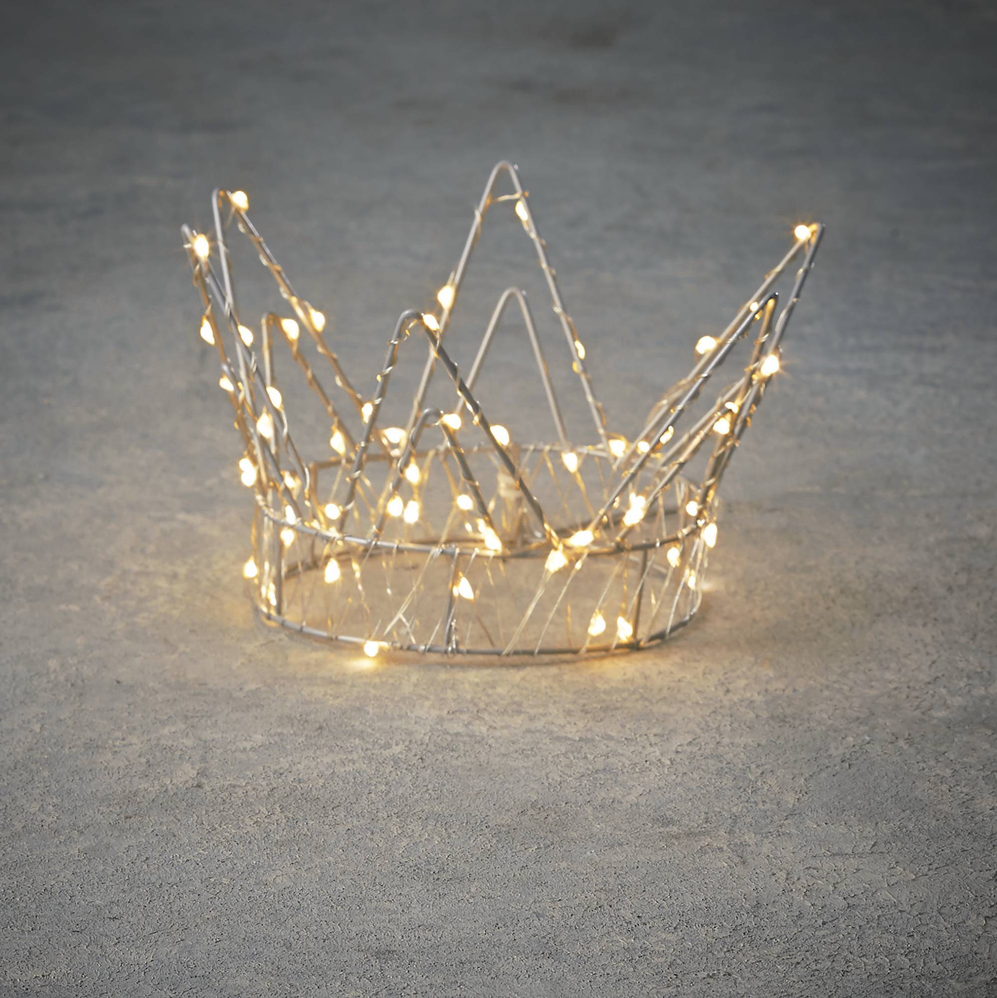 Окунуться в атмосферу сказки и новогоднего волшебства Вам поможет украшение корона для праздничных композиций. Корону украшают 60 ламп приятного тепло-белого свечения. Работает данное украшение от батареек и имеет таймер отключения.
