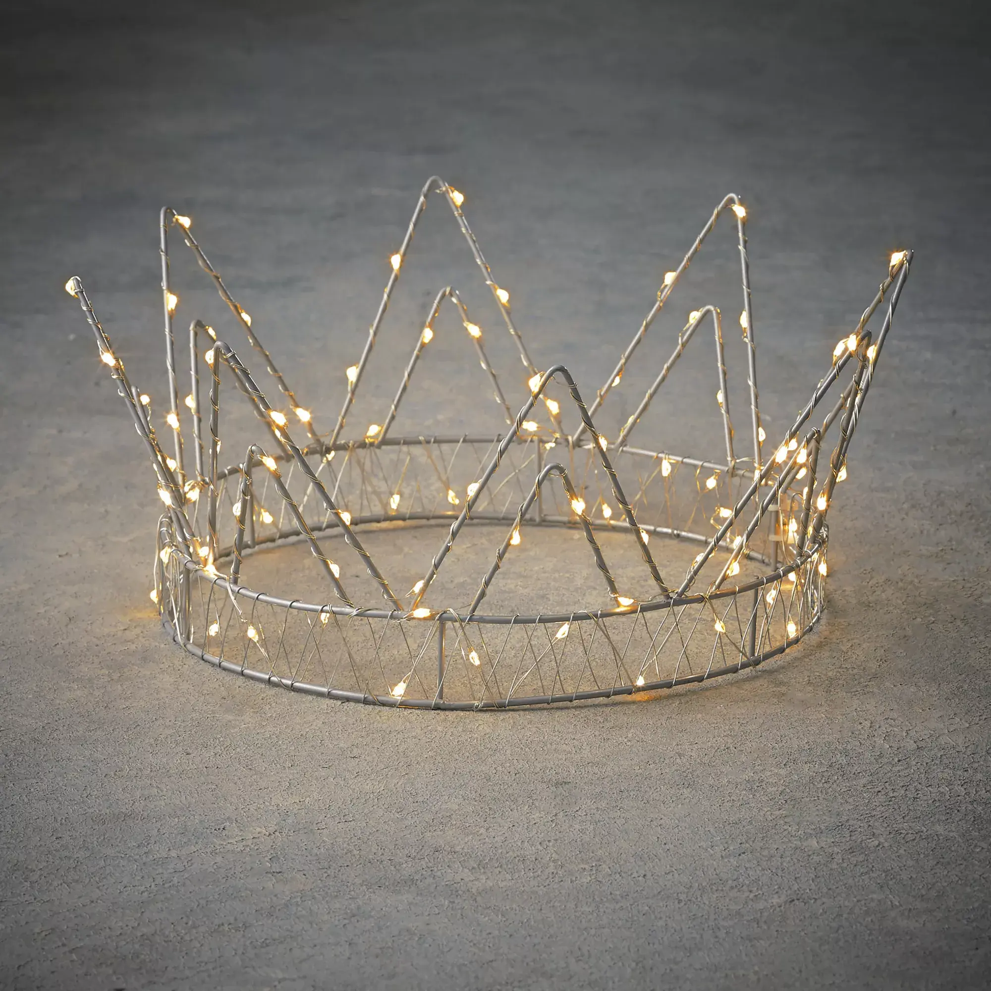 Окунуться в атмосферу сказки и новогоднего волшебства Вам поможет украшение корона для праздничных композиций. Корону украшают 100 ламп приятного тепло-белого свечения. Работает данное украшение от батареек и имеет таймер отключения.