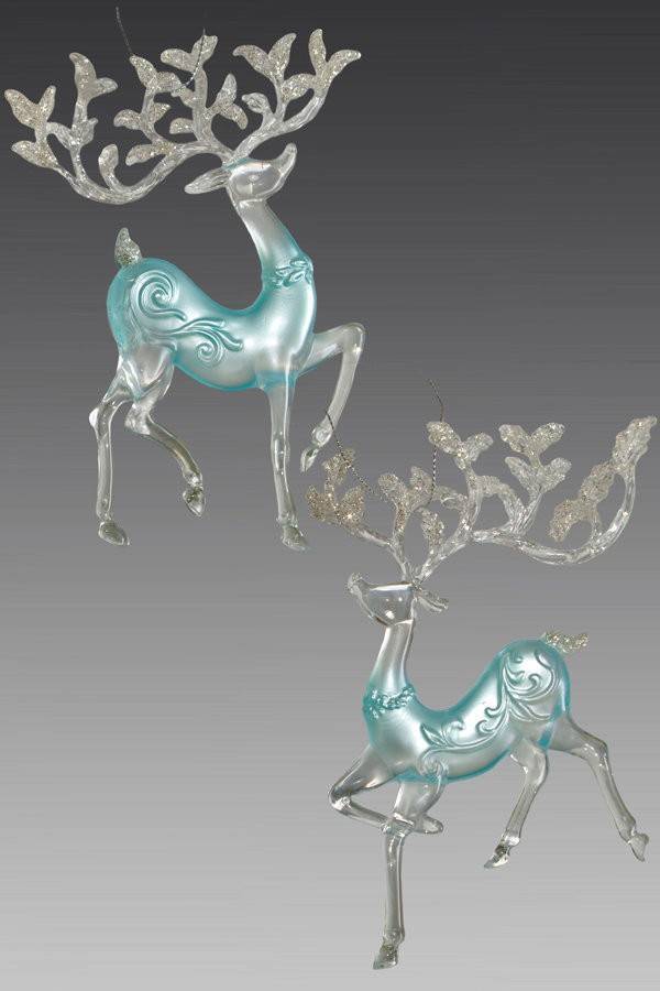 Превосходное украшение в виде оленя. Выполнено украшение из акрила, декорировано блестящей крошкой. Прекрасно будет смотреться на елочке. В ассортименте, выбор не предусмотрен. Размер: 12см.