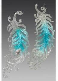 Украшение "Перо" цвет бирюза- серебро, (161055) – купить за 200 ₽ | Мир Ёлок — ваш лучший выбор для создания волшебной атмосферы на Новый год!