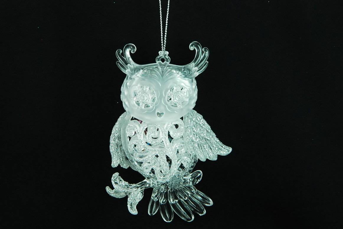 Сова – необычное и окутанное тайной символикой украшение. Украшение на елку в виде фигурки лесной совы станет изысканным декором на вашем новогоднем празднике. А в свете гирлянды ваша совушка засияет словно вырезанная из кусочка льда.