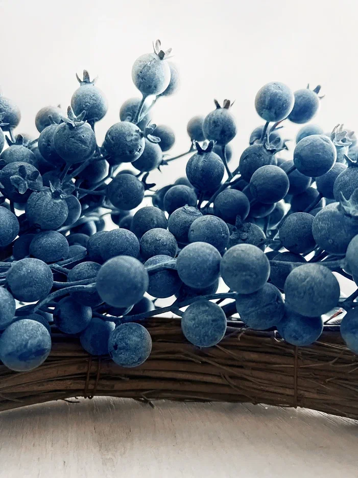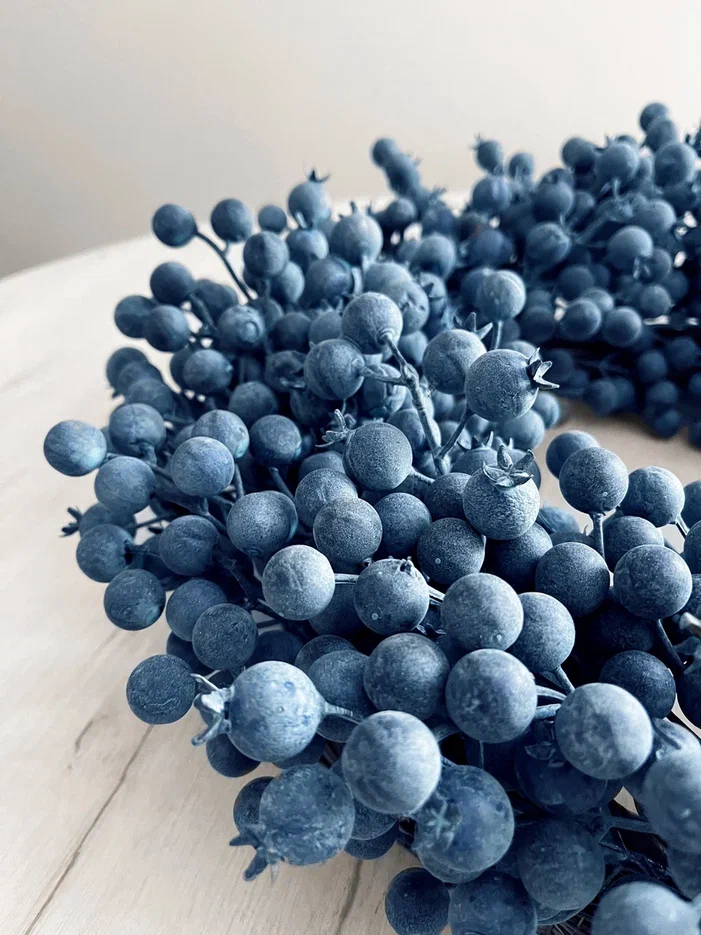 Венок из ягод голубики - роскошный новогодний аксессуар, обращающий на себя внимание своей реалистичностью. Элегантное украшение вызывает восхищение и покоряет с первого взгляда. А может быть, кто-то вспомнит лето, и на душе сразу станет теплее.