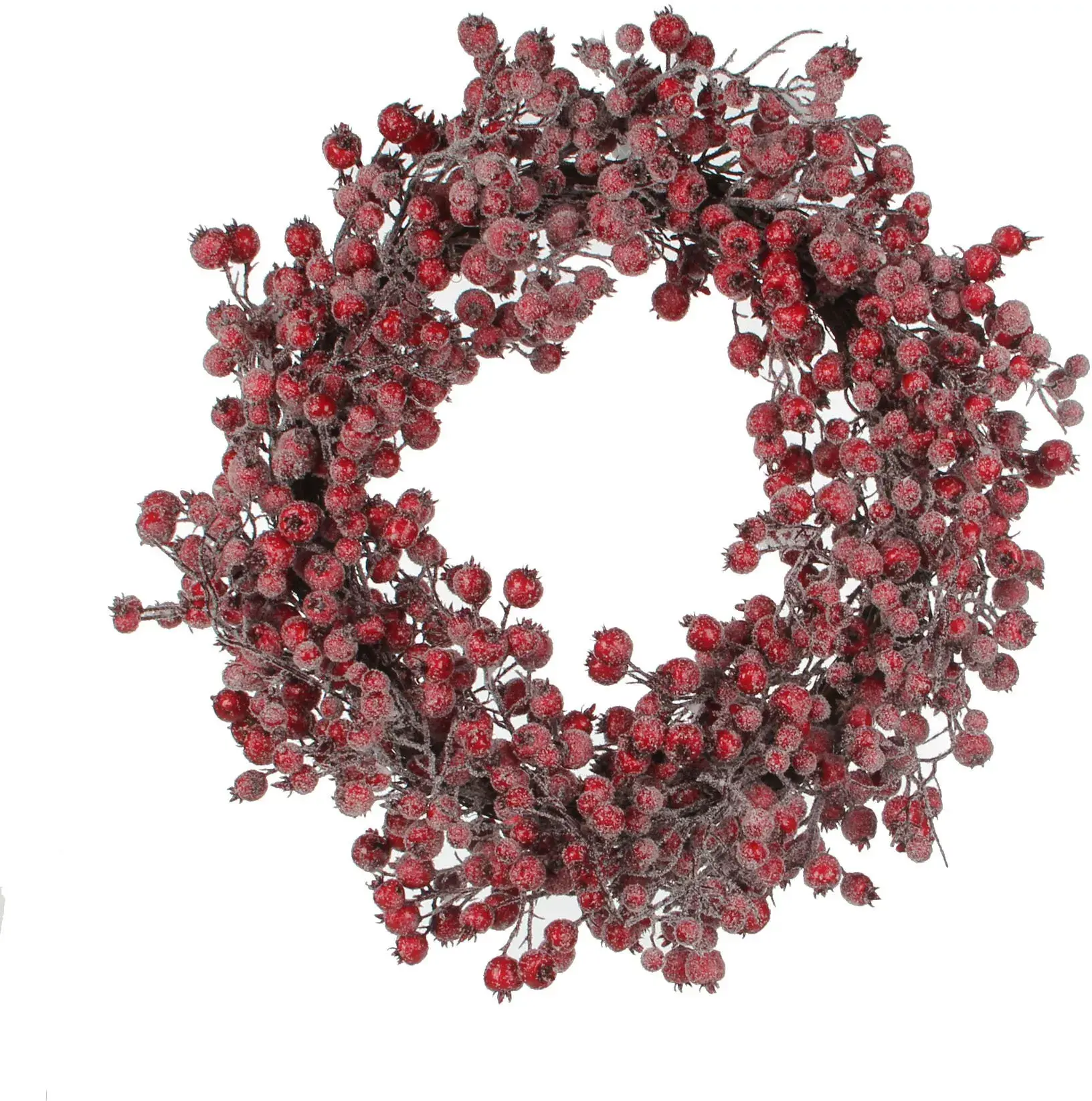 Поделимся с Вами идеей! Можно в этот «ягодный» венок впустить гирлянду-росу, которая имеет тонкий проводок, но очень яркое свечение. Например, теплый белый или желтый цвет – то это будет просто нереальной красоты украшение, поскольку ягоды в инее будут от огня переливаться и искрить как натуральные зимние ягоды. 100% Вы не пожалеете о приобретении этого рождественского венка!