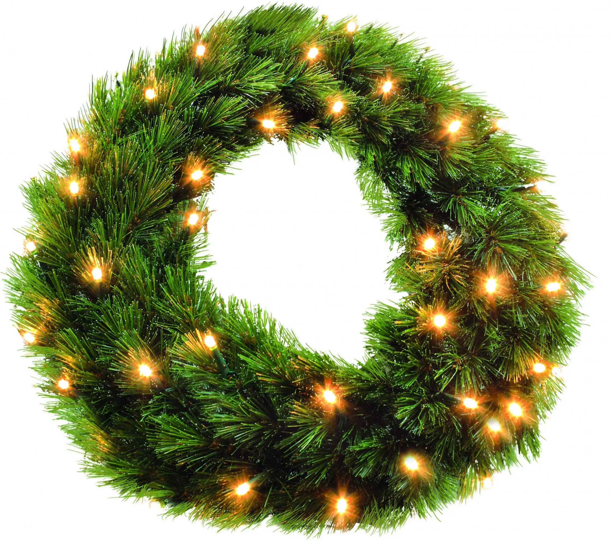 Новогодний хвойный венок представляет собой оригинальную композицию из искусственных еловых веток - прекрасный вариант для оформления интерьера к Новому году. Венок «Лесная красавица» изготовлен из лески, что делает его нежным и воздушным. Вплетённая в ветви электрогирлянда делает его нарядным и прядает зимнее очарование. Создайте в своем доме атмосферу тепла, веселья и радости.