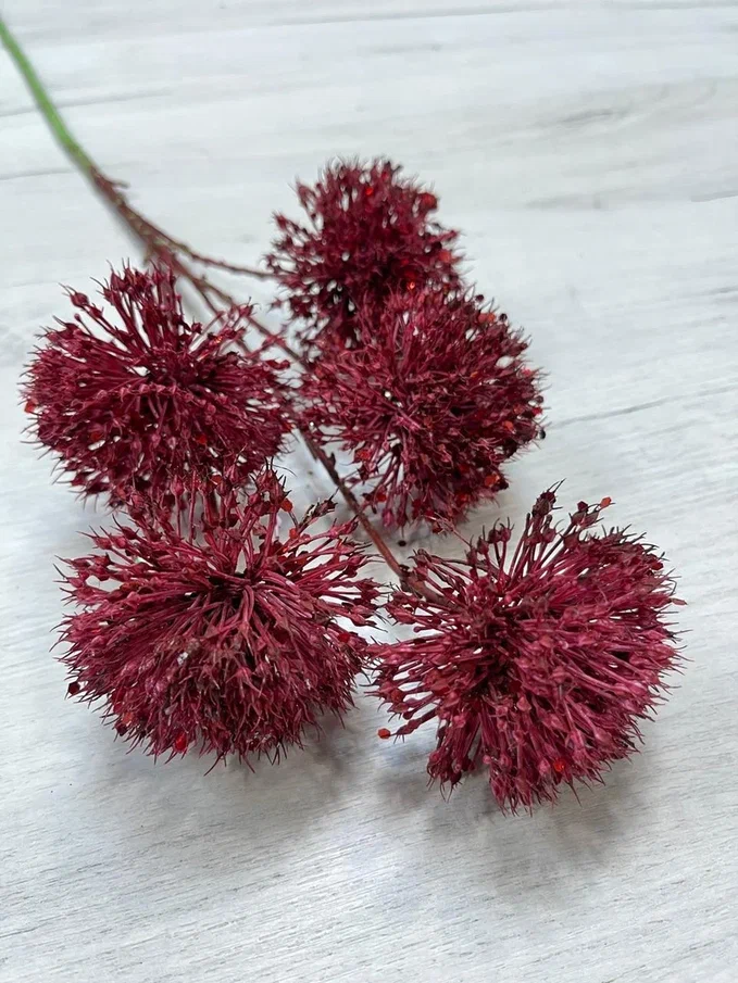 Изысканный бордовый оттенок в авангарде и пока не собирается сдавать позиции. И ветвь «Аллиум» глубокого оттенка бордо – лучшее тому подтверждение. Она завоевала не одну сотню восторженных покупателей. А вы уже готовы стать счастливым обладателем этого великолепия?