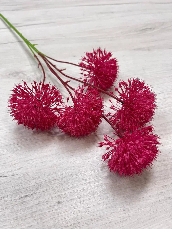 Розовый цвет – один из популярных в грядущем новогоднем сезоне. А значит, декоративная ветвь «Аллиум» выразительного оттенка розового будет кстати. Поскольку акцент сделан на цвет, изделие выглядит лаконично, но при этом так стильно!