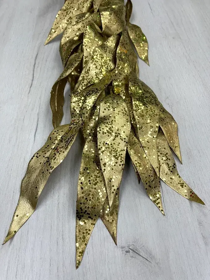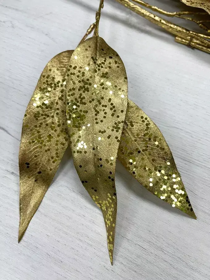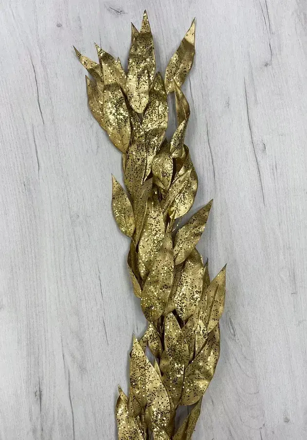 Ветвь «Лавр Императорский» в золотом цвете – отличный аксессуар, благодаря которому ваш интерьер заметно преобразится. Она идеально подходит для декора праздничного стола, камина, стен, окон и дверей.