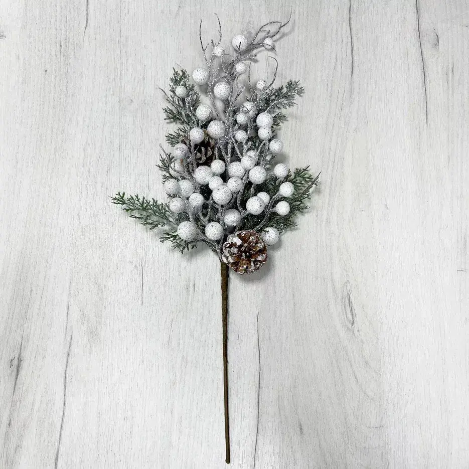 Красивое, необычное и очень нарядное украшение вашего дома к Новому году – заснеженная «Блестящая» еловая ветвь с шишками и диковинными сверкающими белыми ягодами. Такая веточка с первого взгляда покорит любителей неожиданных сюрпризов и смелых решений.