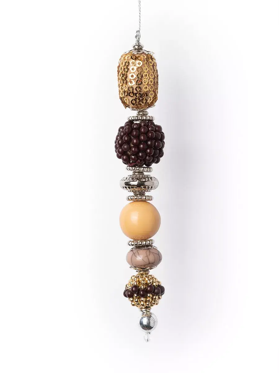 Подвеска «Янтарная капель» от Karlsbach напоминает серьги. Но уверяем вас, что на новогодней ёлке украшение выглядит не менее гармонично, чем в ушах какой-нибудь любительницы винтажного стиля. Изделие выполнено в коричневой цветовой гамме. Бусины разных оттенков этого благородного оттенка смотрятся очень стильно. С таким декором новогодняя елка обретёт особый винтажный шик, а гости оценят ваш изысканный вкус!