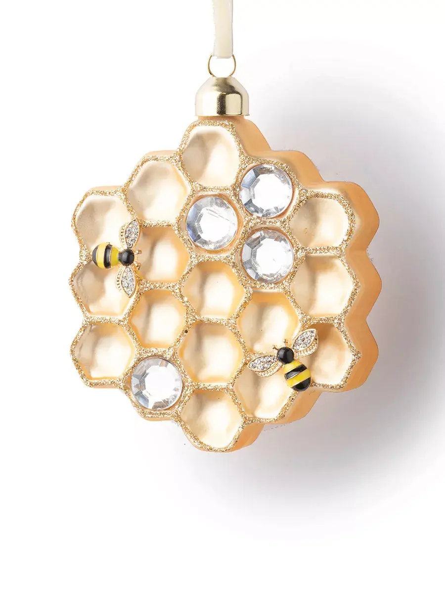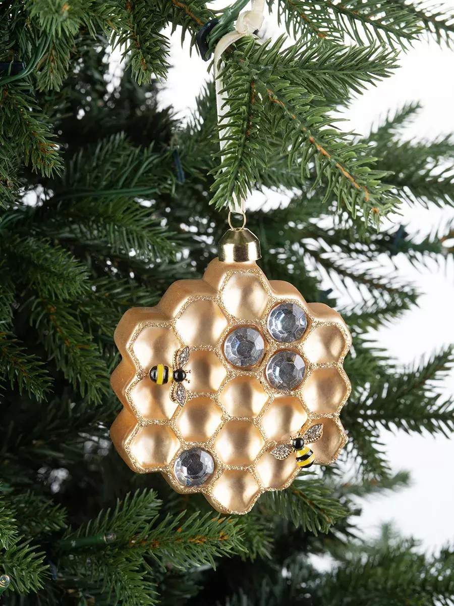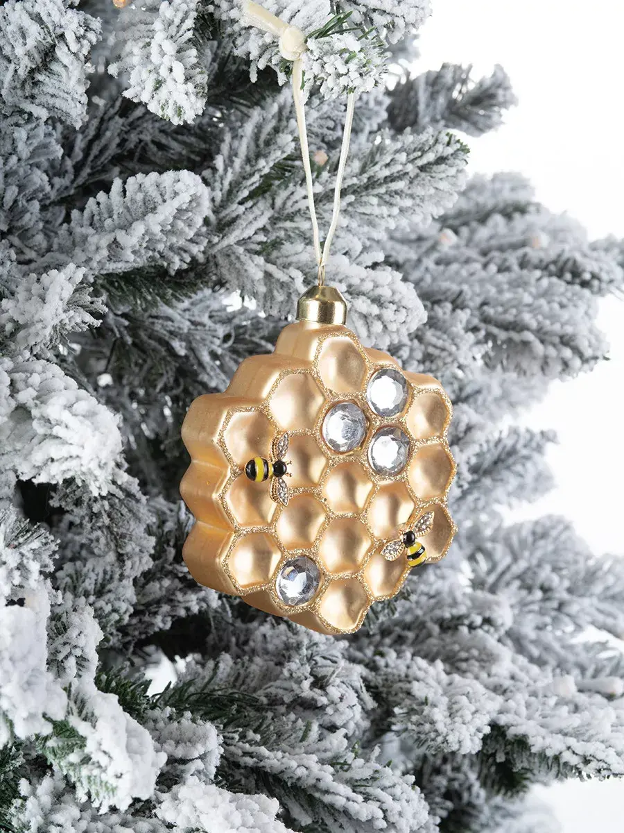 Медовый переполох, да еще и на новогодней елке? Да-да, именно такую потрясающую идею воплотили в жизнь дизайнеры бренда Karlsbach. Они создали винтажную подвеску с одноименным названием. Она так и сверкает, так и переливается в свете новогодних огней, добавляя сладких ноток главному празднику года. «Медовый переполох» станет для вас той елочной игрушкой, которая долго будет радовать глаз своим необычным исполнением – в виде сот.