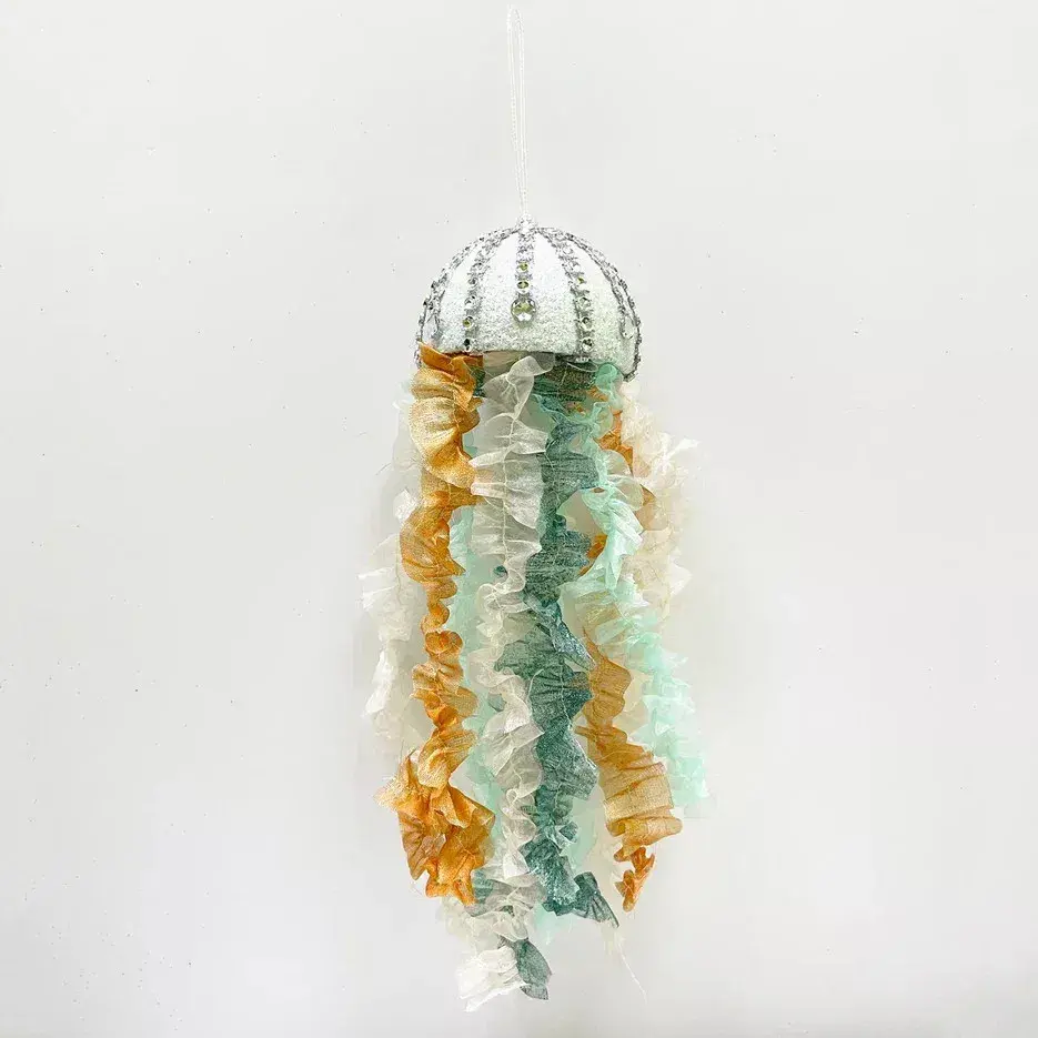 Уж кого, а такую роскошную, с длинными струящимися щупальцами медузу заметить просто невозможно! Это настоящее произведение искусства, в которое вложена масса труда и любви к своему делу. Винтажная медуза с разноцветными щупальцами подходит не только для оформления новогоднего дерева, но и создания необычных композиций с морским колоритом.