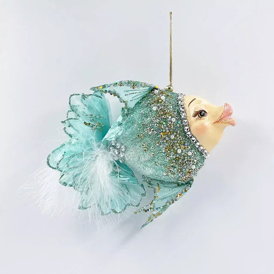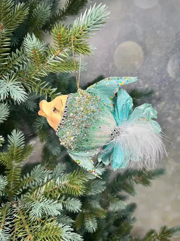 Вашему вниманию представляем прелестную игрушку – «Рыбу-Ангела», которая считается верным спутником морского царя Посейдона. Очаровательная рыбка с большими плавниками и летящим хвостом переливается в елочных огнях. Размер рыбы достигает почти 20 см – это немаленькое украшение, которое станет достойным декором для пышной и высокой лесной красавицы.