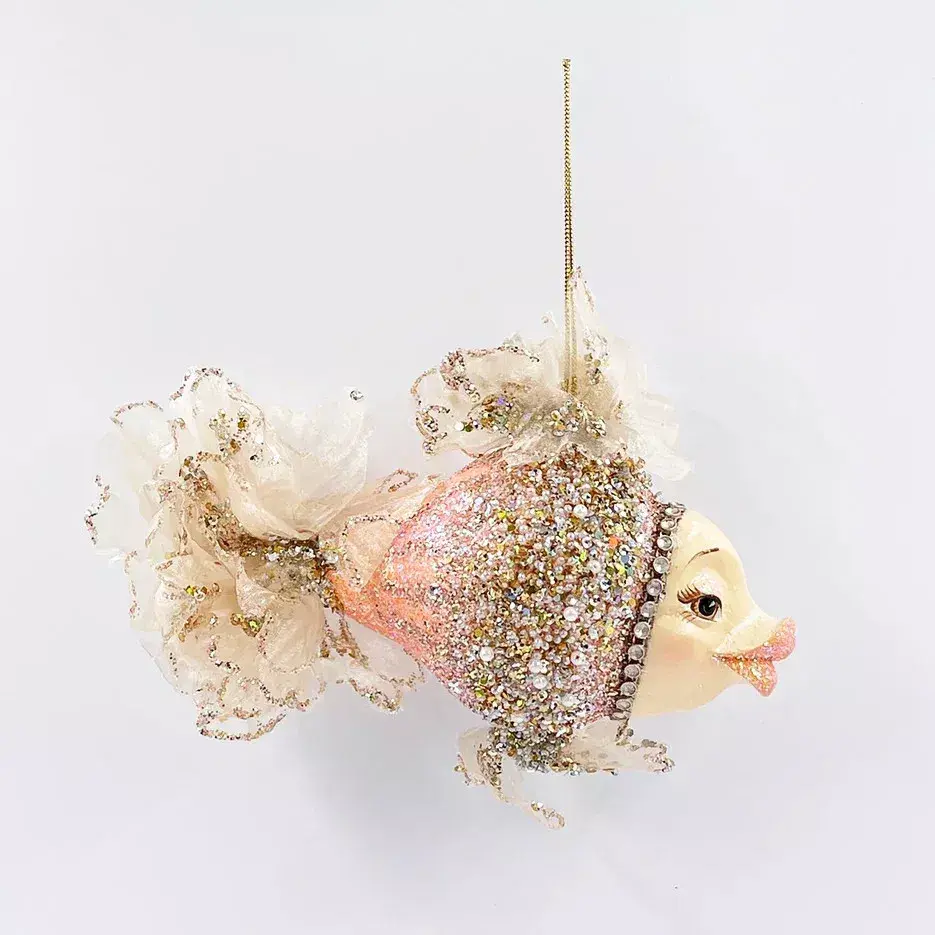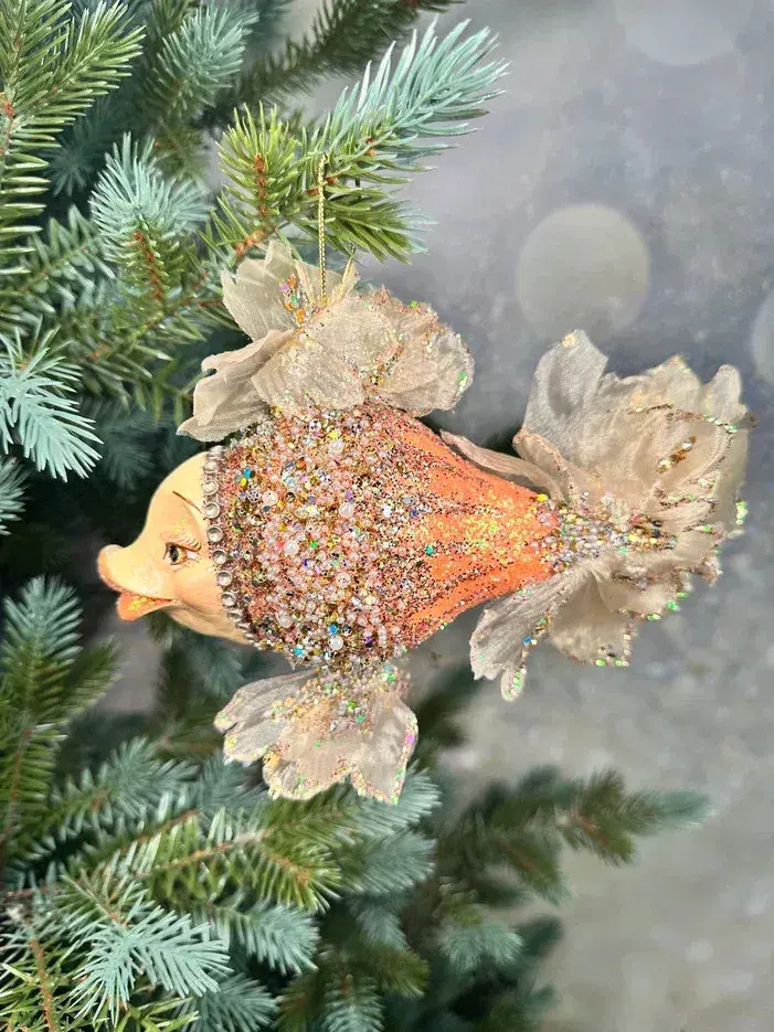 Вашему вниманию представляем прелестную игрушку – «Рыбу-Ангела», которая считается верным спутником морского царя Посейдона. Очаровательная рыбка с большими плавниками и летящим хвостом переливается в елочных огнях. Размер рыбы достигает почти 20 см – это немаленькое украшение, которое станет достойным декором для пышной и высокой лесной красавицы.