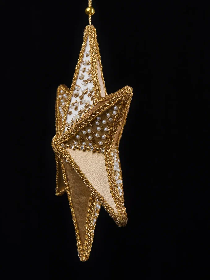 Какие игрушки подобрать к пышному и высокому новогоднему дереву? Коллекция «Сокровища Посейдона» и Морская Звезда из нее идеально для этого подходят. Когда дерево нужно украсить необычно, ярко, но соблюсти тематику и стиль, золотые игрушки представляются лучшим вариантом. Как золотая Морская Звезда красиво и ярко сияет на ветке – глаз не оторвать!