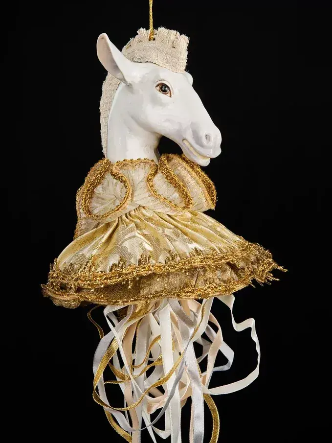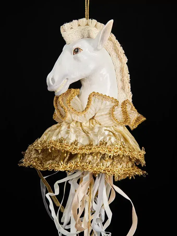 Это винтажное украшение Царская лошадь в пачке от бренда Christmas DeLuxe — настоящее произведение искусства для вашего новогоднего декора. Его размеры 19×45 см делают его заметным элементом, который привлечет внимание и добавит изысканности вашей елке.