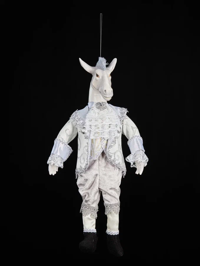Винтажное украшение Царский конь от Christmas DeLuxe — это изысканное и необычное украшение, которое станет ярким акцентом на вашей новогодней елке. Его высота составляет 37 см, что делает его заметным элементом декора.