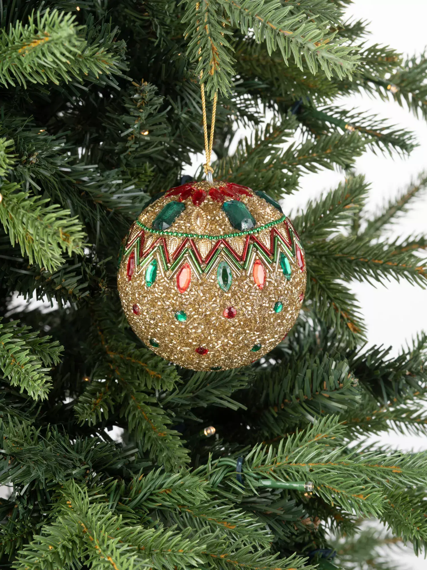 Вы только полюбуйтесь на золотые россыпи, которые украшают стеклянный шар «Королевские самоцветы»! Среди прочих творений знаменитого бренда Karlsbach – это настоящее сокровище, ведь в нем все гармонично – и сочетание цветов, и комбинация узоров. Шары представлены в двух вариантах – с диаметром 7 и 9 см, так что с их помощью можно нарядно украсить и небольшую елочку, и новогоднее дерево солидного размера.