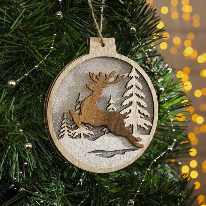Красавец олень спешит поздравить вас с Новым годом! А мы спешим представить вашему вниманию новинку – елочную игрушку «Бегущий олень», работающую от батареек. Изделие, выполненное в золотисто-коричневой цветовой гамме, смотрится очень выигрышно.