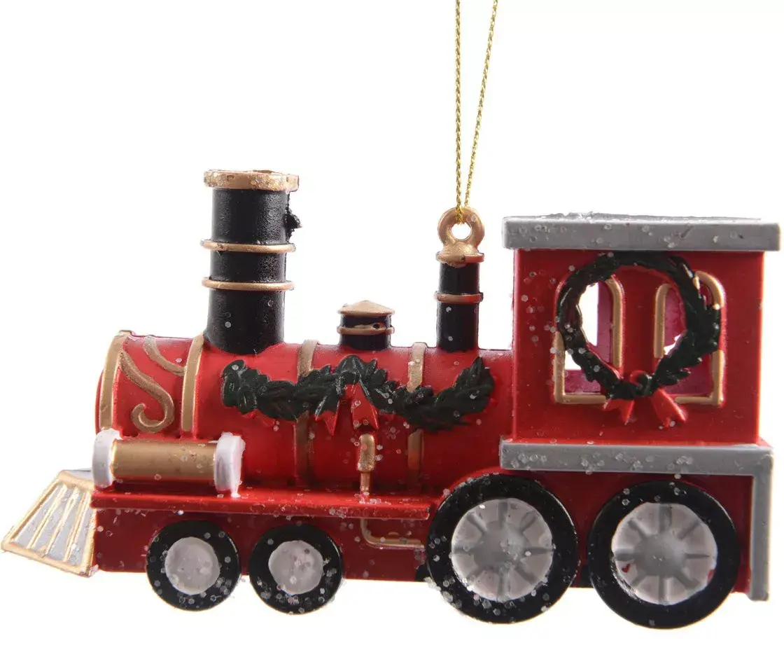 Надоели елочные шары? Тогда приобретите елочную игрушку «Забавный паровоз» от фирмы Kaemingk! Ваши дети будут в восторге, да и взрослые оценят оригинальный дизайн этого симпатичного паровозика праздничного красного цвета. На нем так и хочется умчаться в новогоднюю сказку! Детали черного, белого, серебристого и золотистого цвета на красном фоне корпуса игрушки смотрятся выигрышно. Предусмотрена подвеска в виде золотистой нити. В общем, дизайн продуман до мелочей, но и это еще не все. Игрушка посыпана блестками, напоминающими иней. Создается впечатление, что паровозик едет по зимнему лесу. Наверное, спешит к новогоднему столу!