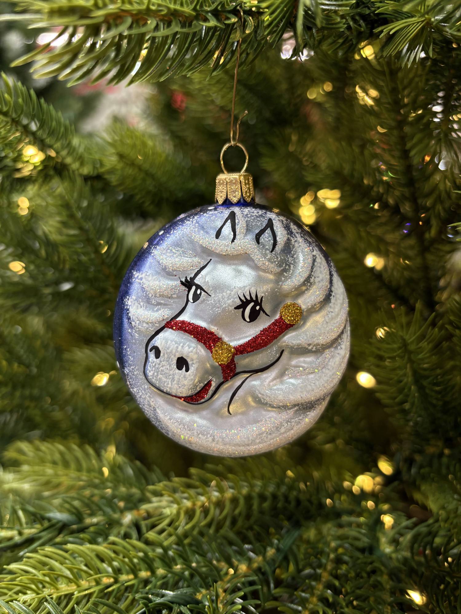 Ёлочное украшение «Лошадка» (90 мм) — это красивое стеклянное украшение, которое станет отличным дополнением к вашей новогодней ёлке. Оно выполнено в форме лошадки и доступно в трех цветах: золотом, синем и красном. Высота игрушки составляет 90 мм, что делает её заметным элементом декора.