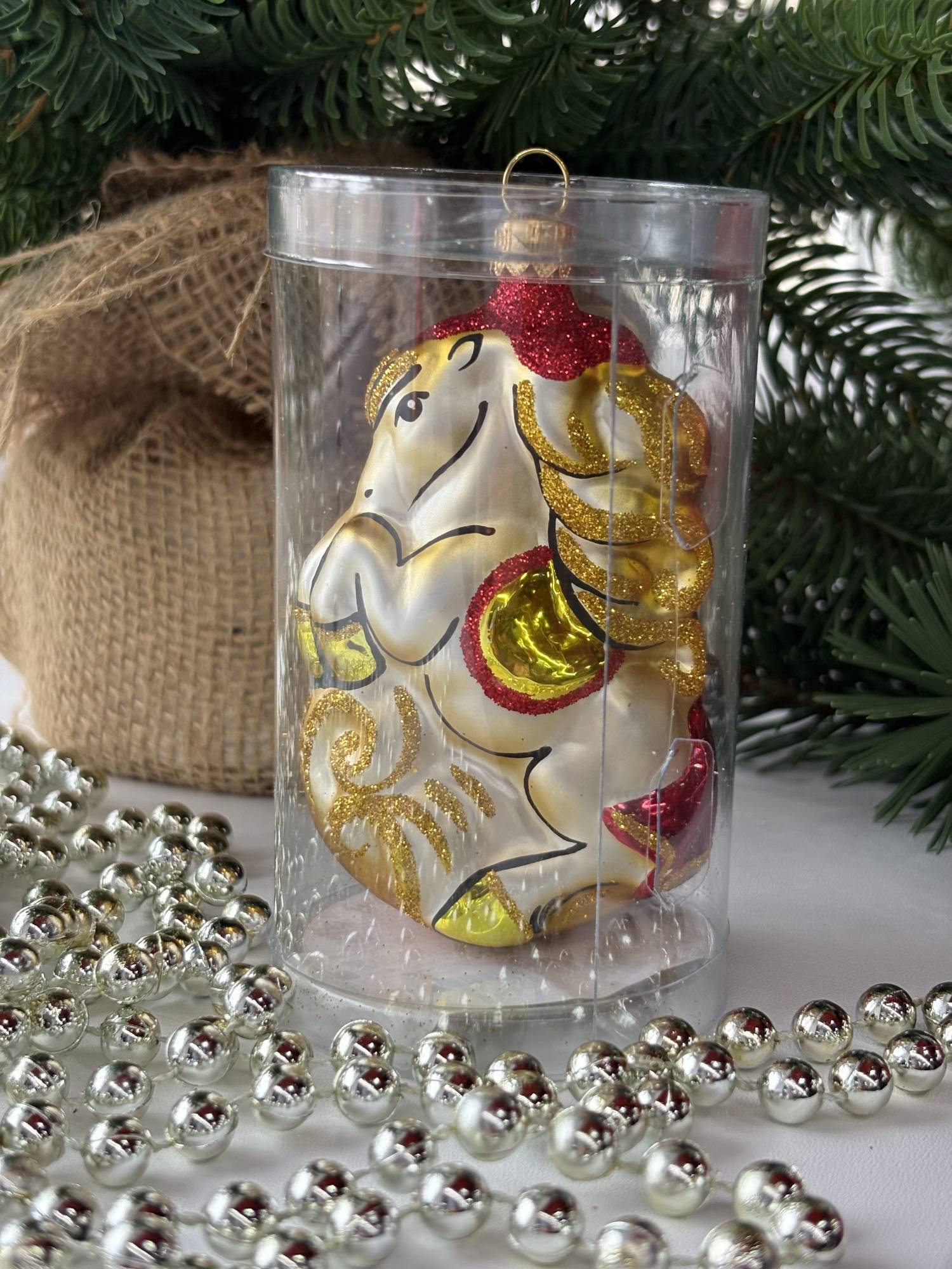 Эта игрушка подойдёт для создания праздничного настроения и станет ярким акцентом на ёлке.