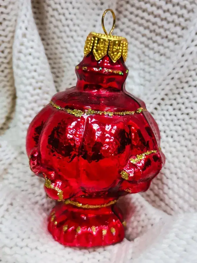 Елочное украшение ярко-красного цвета «Самовар» с ненавязчивой золотистой отделкой так похоже на леденец, что его хочется съесть! При взгляде на него рождаются только приятные мысли. Пусть наступающий год будет счастливым, позитивным и вкусным!