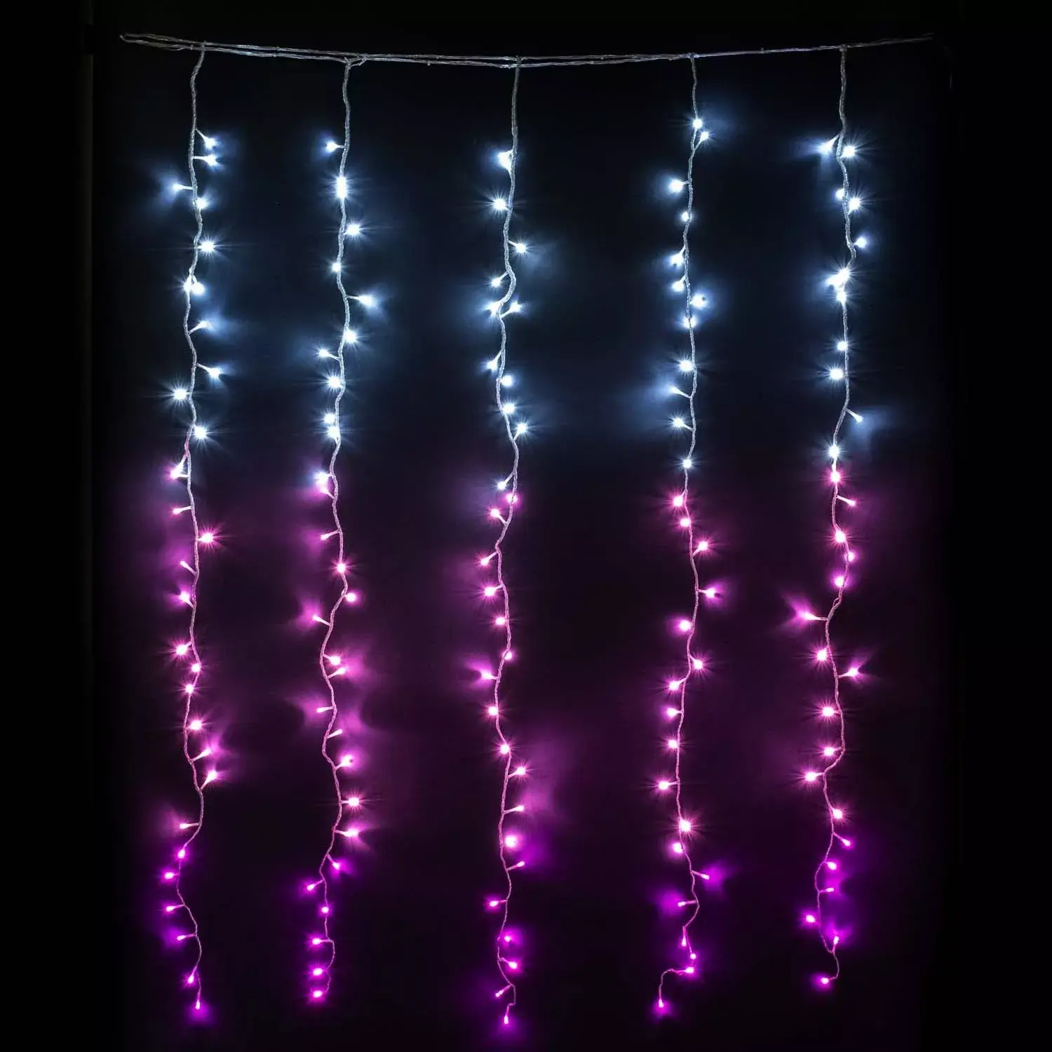 Светодиодный занавес Бегущий огонь, одно из необычных и завораживающих украшений. Это достигается благодаря встроенному контроллеру, который имеет 10 режимов работы. Для производства занавеса используются необычайно яркие тайваньские светодиоды, с большим ресурсом работы.